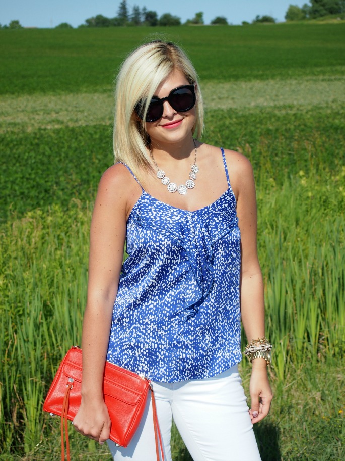 Tank: c/o Ann Taylor | Jeans: c/o Ann Taylor | Shoes: Steve Madden {old, similar} | Necklace: Forever 21 | Bag: Rebecca Minkoff | Sunnies: Karen Walker | Bracelets: c/o Stella & Dot, J.Crew | Watch: Micheal Kors