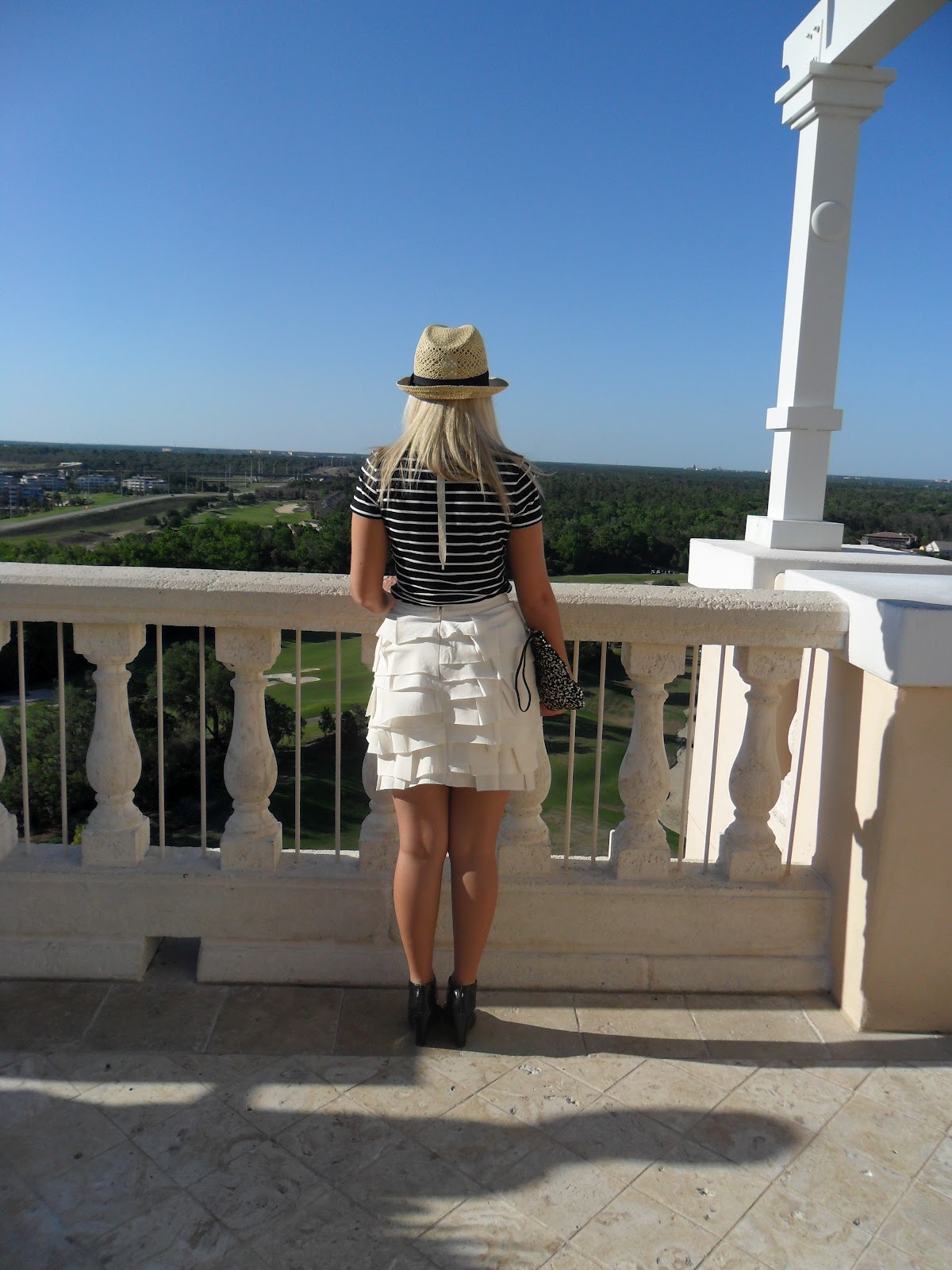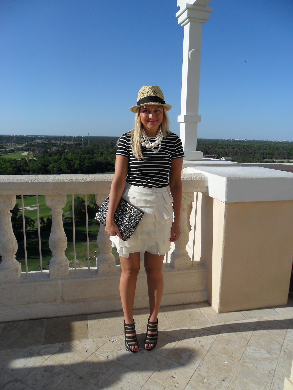 Her //  Hat/Clutch: H&M {similar}| Tshirt: Joe Fresh | Skirt: Forever 21 {similar}|