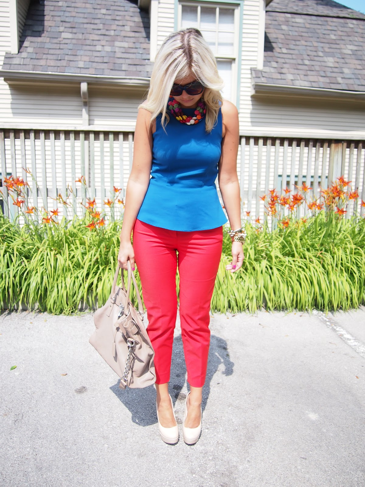Top: Zara {similar} | Pants: H&M {similar} | Shoes: Aldo {similar} Bag/Watch: Michael Kors | Bracelets: Jcrew, H&M, F21 | Sunnies: House of Harlow Necklace: c/o Purple Paparazzi Seriously lusting after the entire Purple Paparazzi collection as of late! |